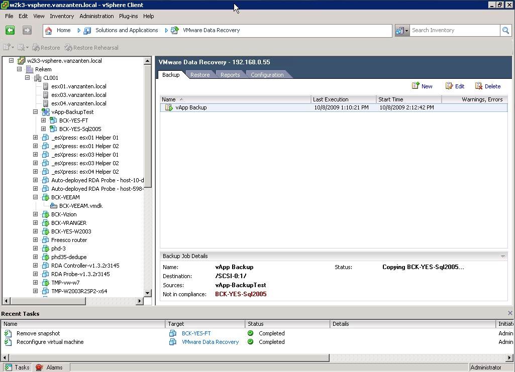 While VMware Data Recovery has nice features for backup and data recovery, including a new of all actions during a backup as well as fine-grained options for the number of backups you decide to retain, it falls short in the areas of file-level restore and reporting.
